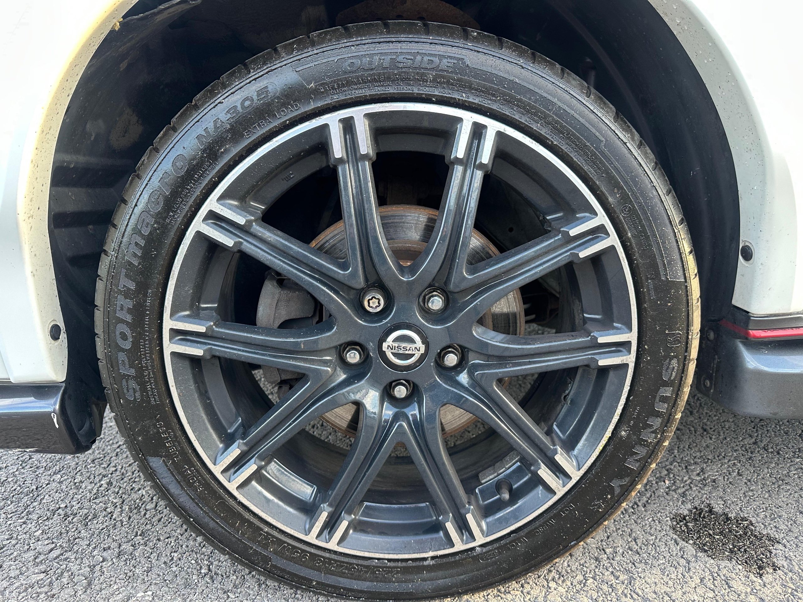 Highlights include Nissan Connect satellite navigation with rear-view camera, Bluetooth connectivity with USB and AUX input, and heated front sports seats trimmed with Alcantara and leather. Automatic lights and wipers, electric folding heated mirrors, and climate control provide everyday convenience.